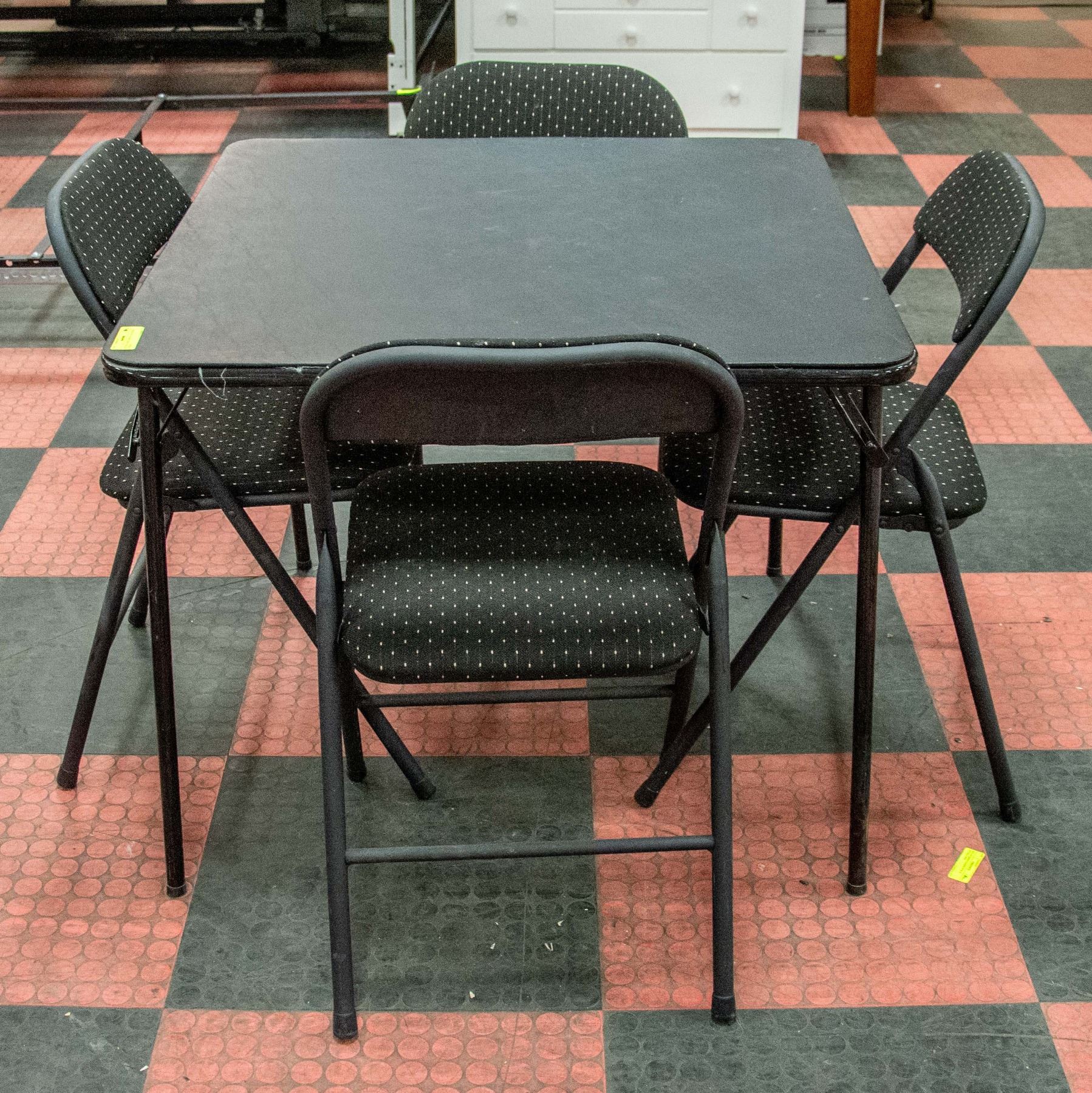 BLACK CARD TABLE + 4 PADDED FOLDING CHAIRS