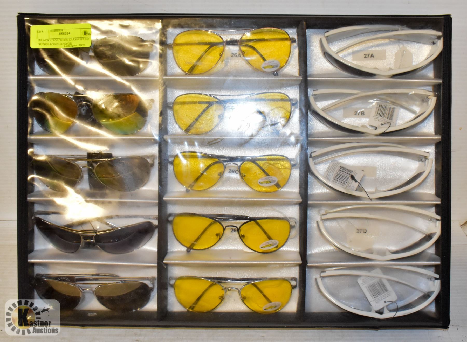 BLACK CASE WITH 15 ASSORTED SUNGLASSES AND/OR