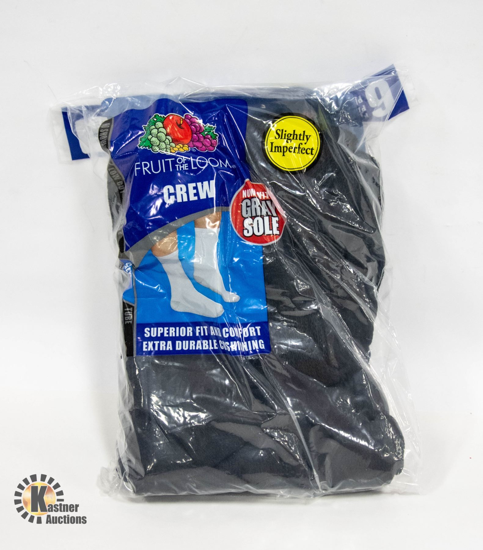 BLACK CREW SOCKS 12-16 SIZE 6-PACK FRUIT OF