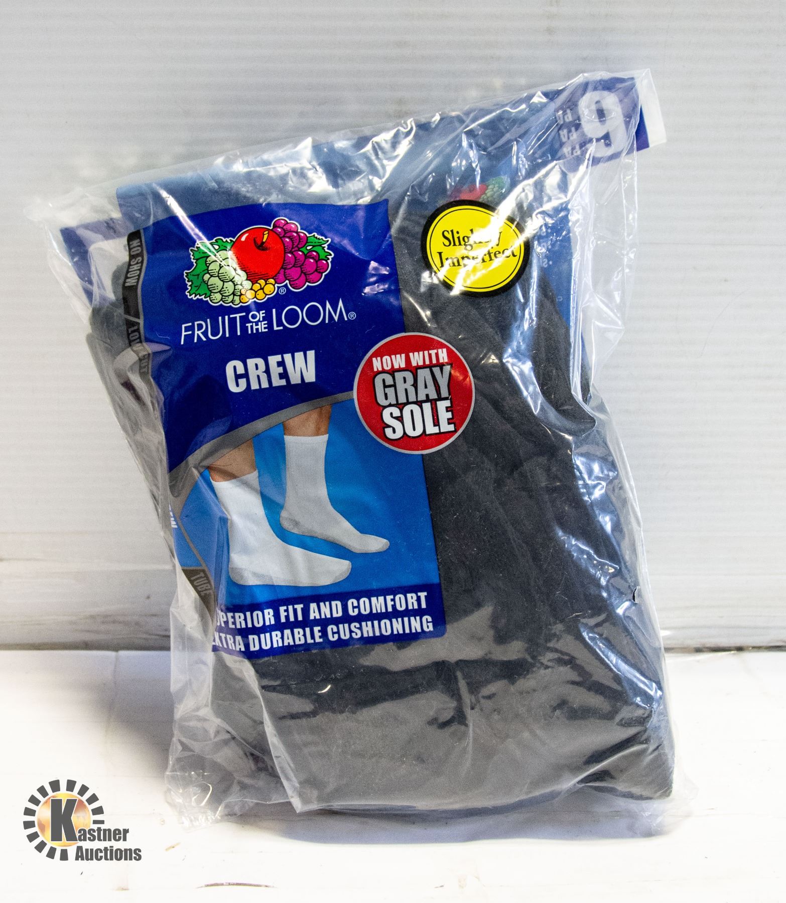 BLACK CREW SOCKS 12-16 SIZE 6-PACK FRUIT OF