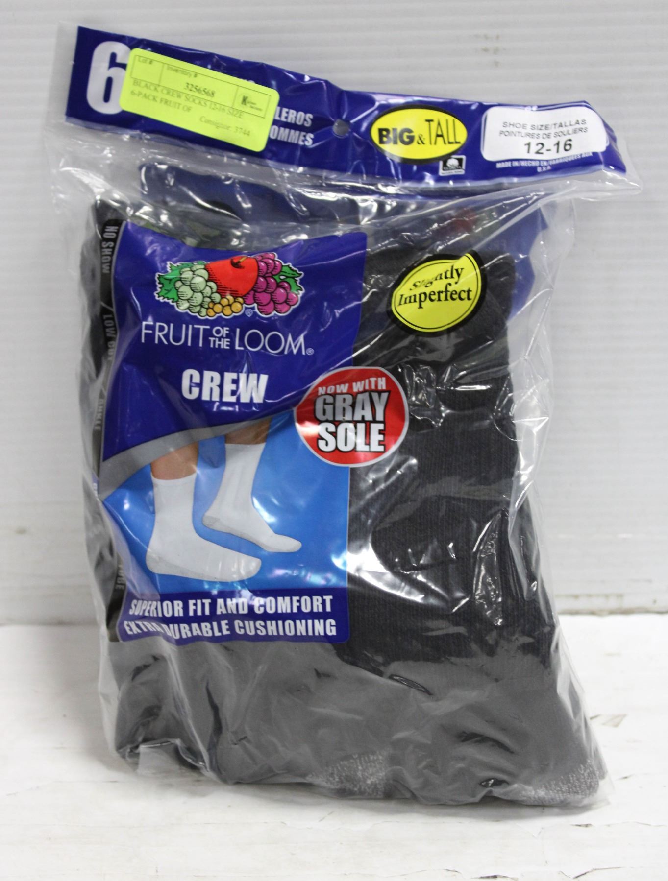 BLACK CREW SOCKS 12-16 SIZE 6-PACK FRUIT OF