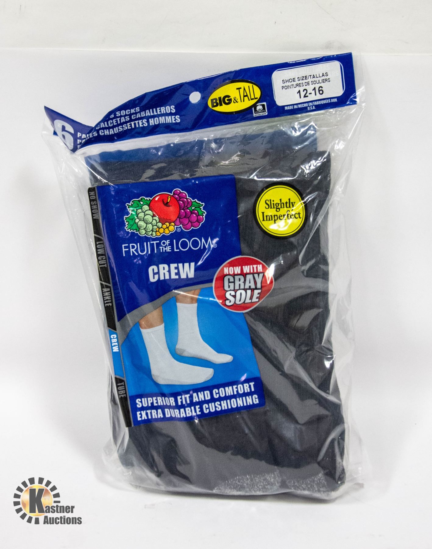 BLACK CREW SOCKS 12-16 SIZE 6-PACK FRUIT OF