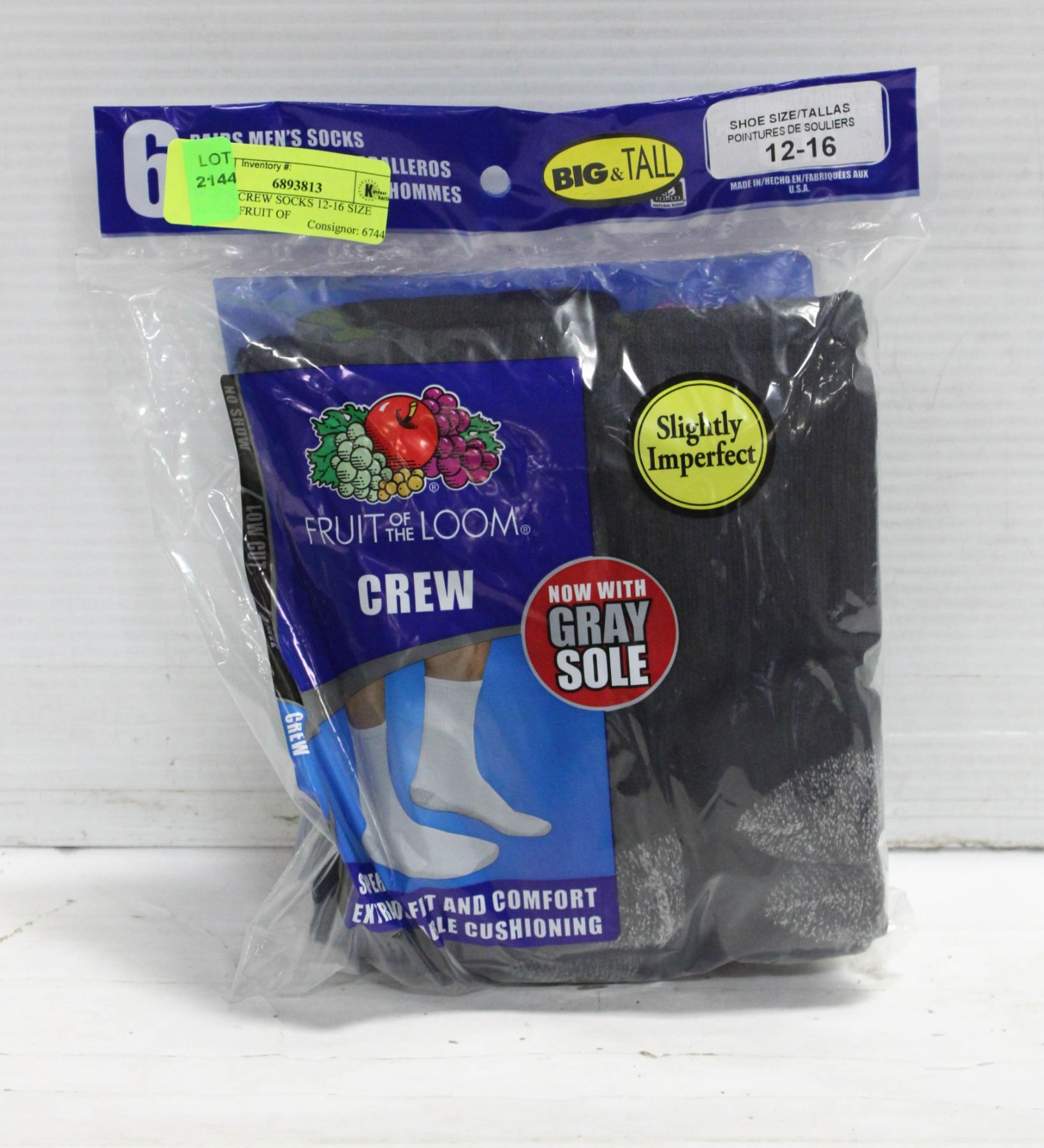 BLACK CREW SOCKS 12-16 SIZE 6-PACK FRUIT OF