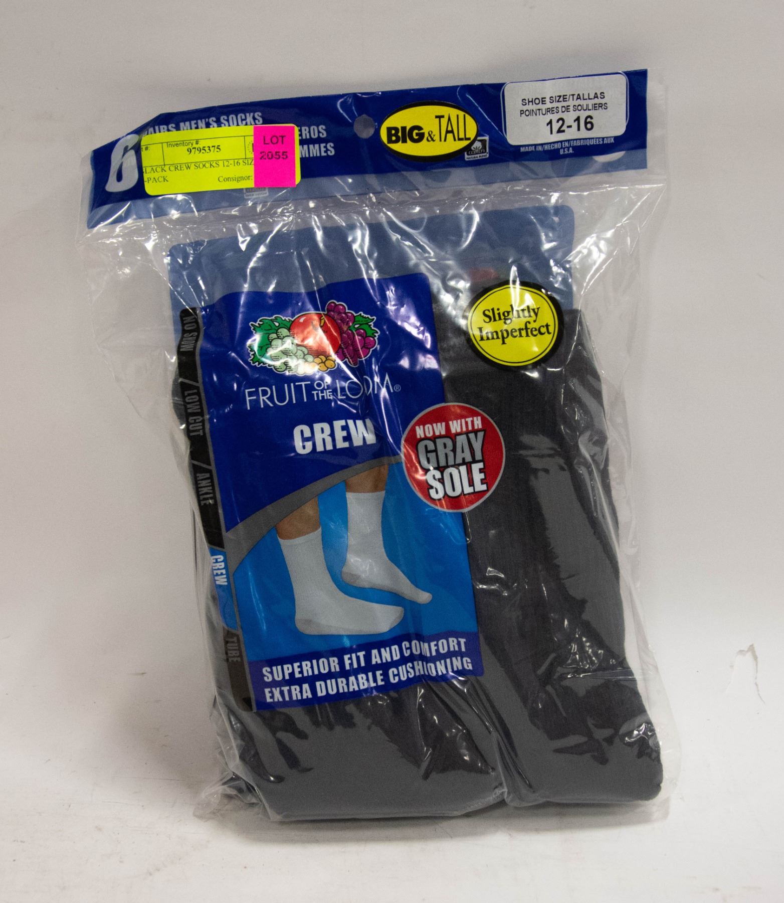 BLACK CREW SOCKS 12-16 SIZE 6-PACK