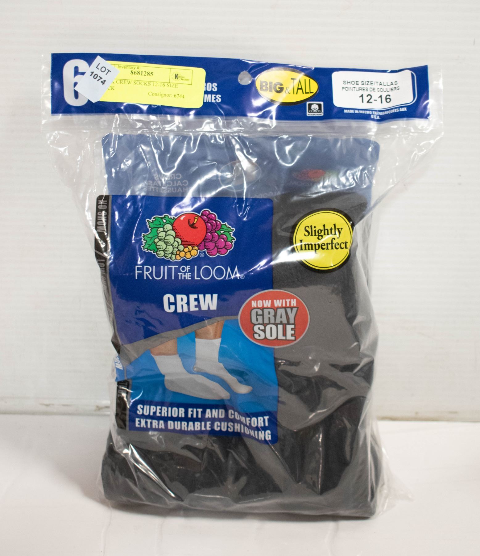 BLACK CREW SOCKS 12-16 SIZE 6-PACK