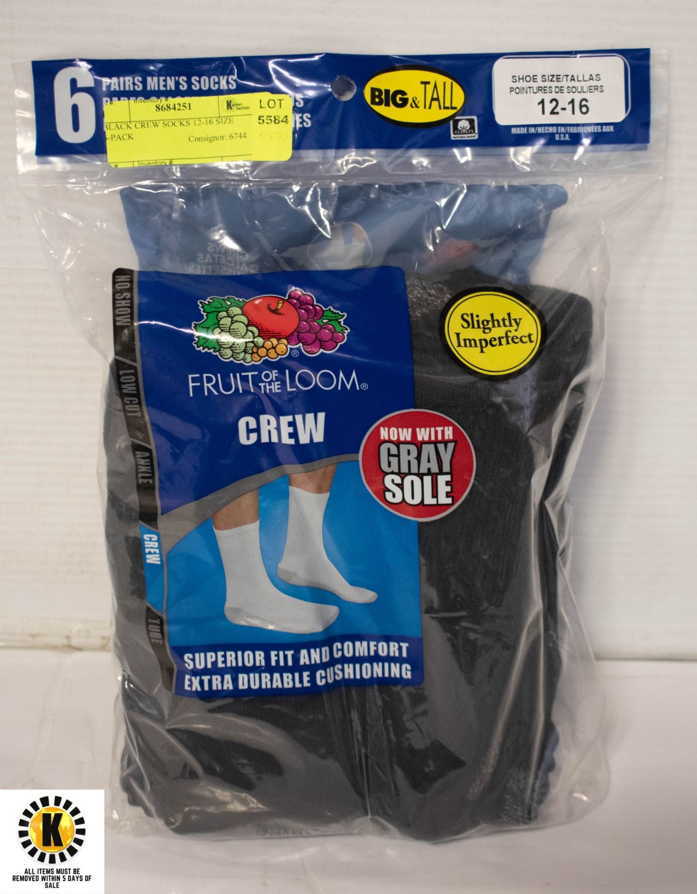 BLACK CREW SOCKS 12-16 SIZE 6-PACK