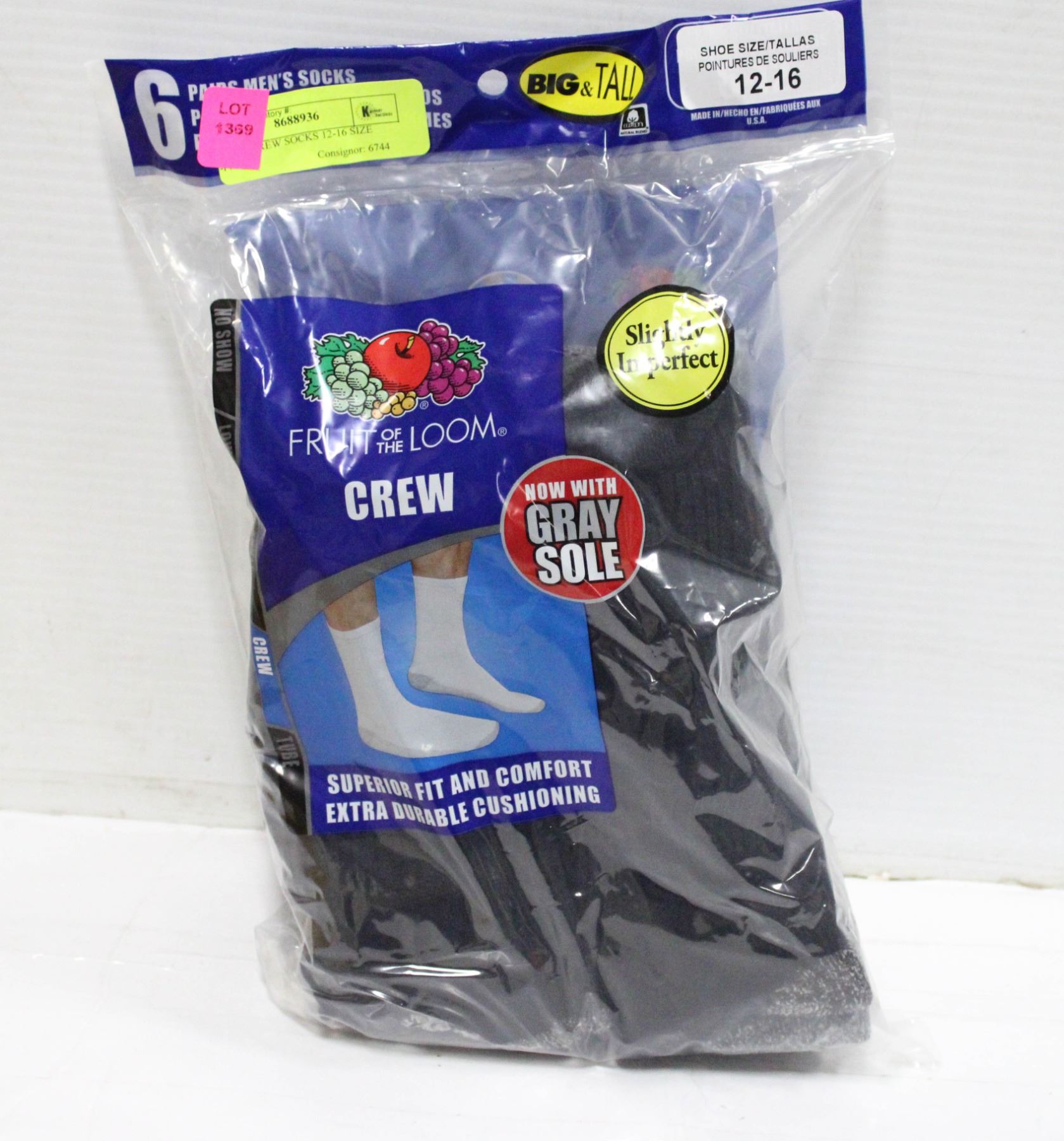 BLACK CREW SOCKS 12-16 SIZE 6-PACK