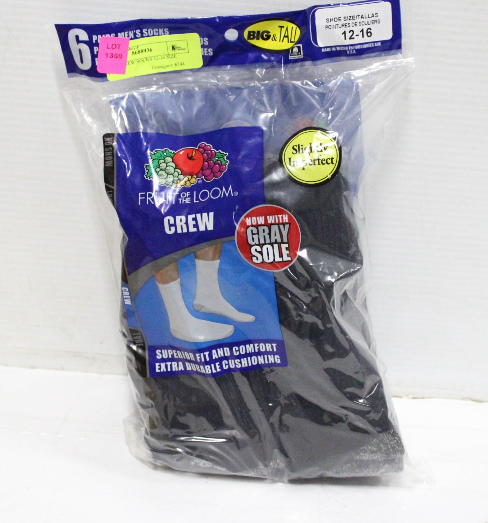 BLACK CREW SOCKS 12-16 SIZE 6-PACK