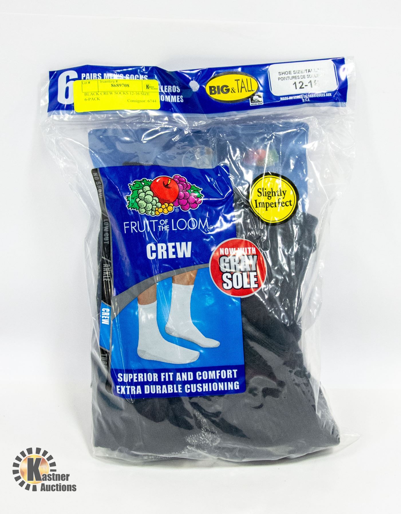 BLACK CREW SOCKS 12-16 SIZE 6-PACK