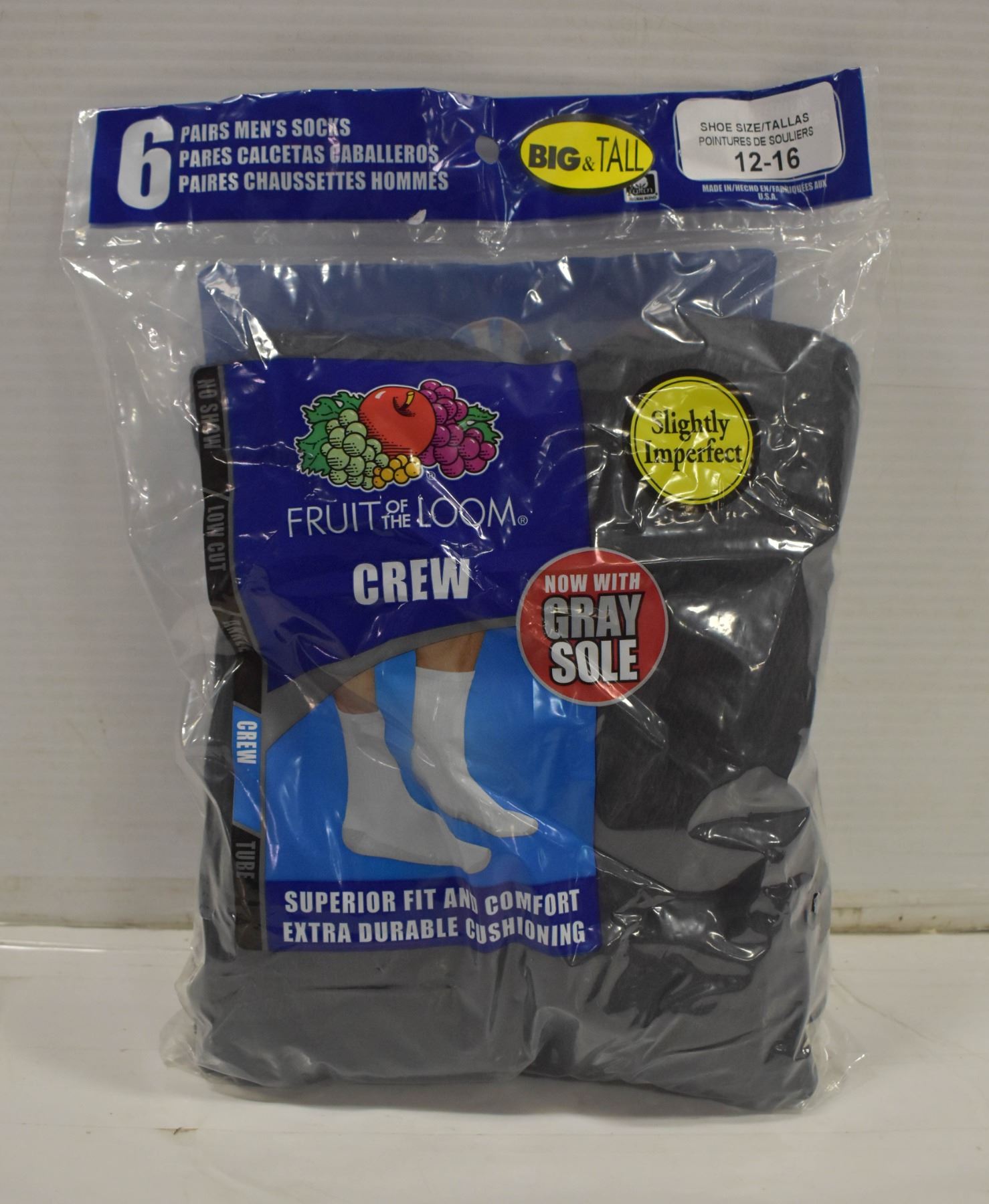 BLACK CREW SOCKS 12-16 SIZE 6-PACK