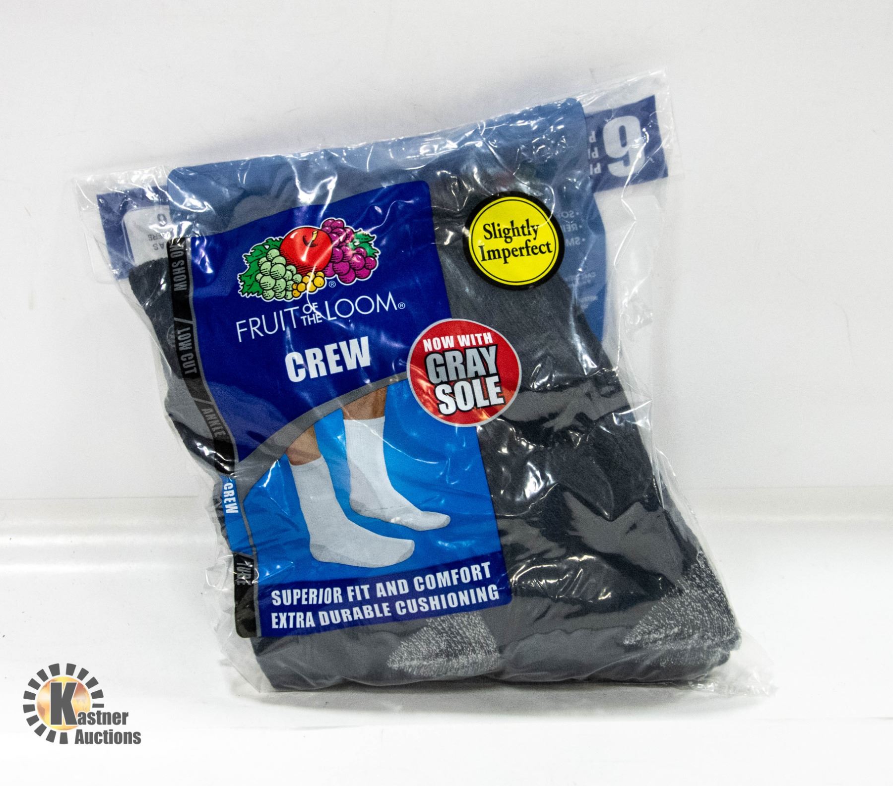 BLACK CREW SOCKS 12-16 SIZE FRUIT OF THE