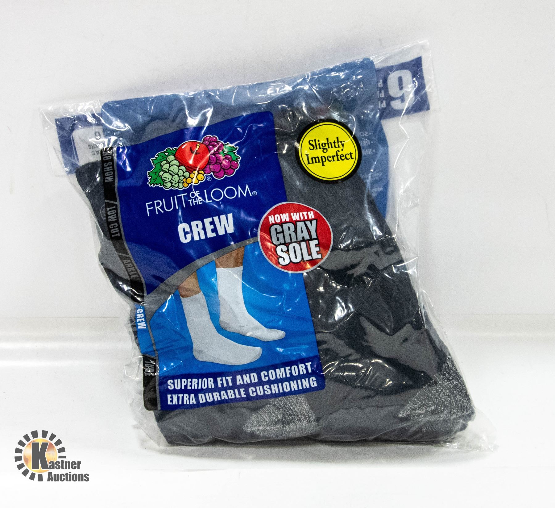 BLACK CREW SOCKS 12-16 SIZE FRUIT OF THE