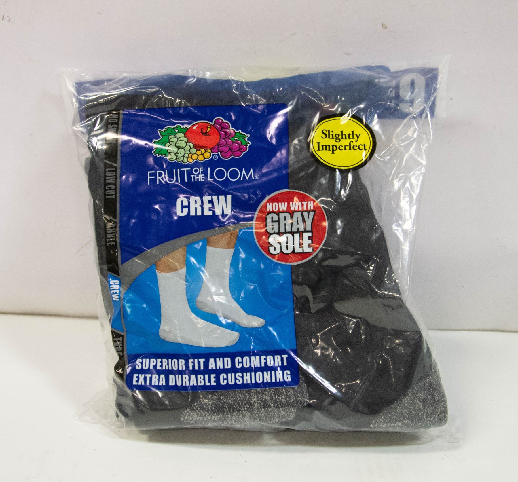BLACK CREW SOCKS,SIZE 12-16,6-PACK,FRUIT OF THE