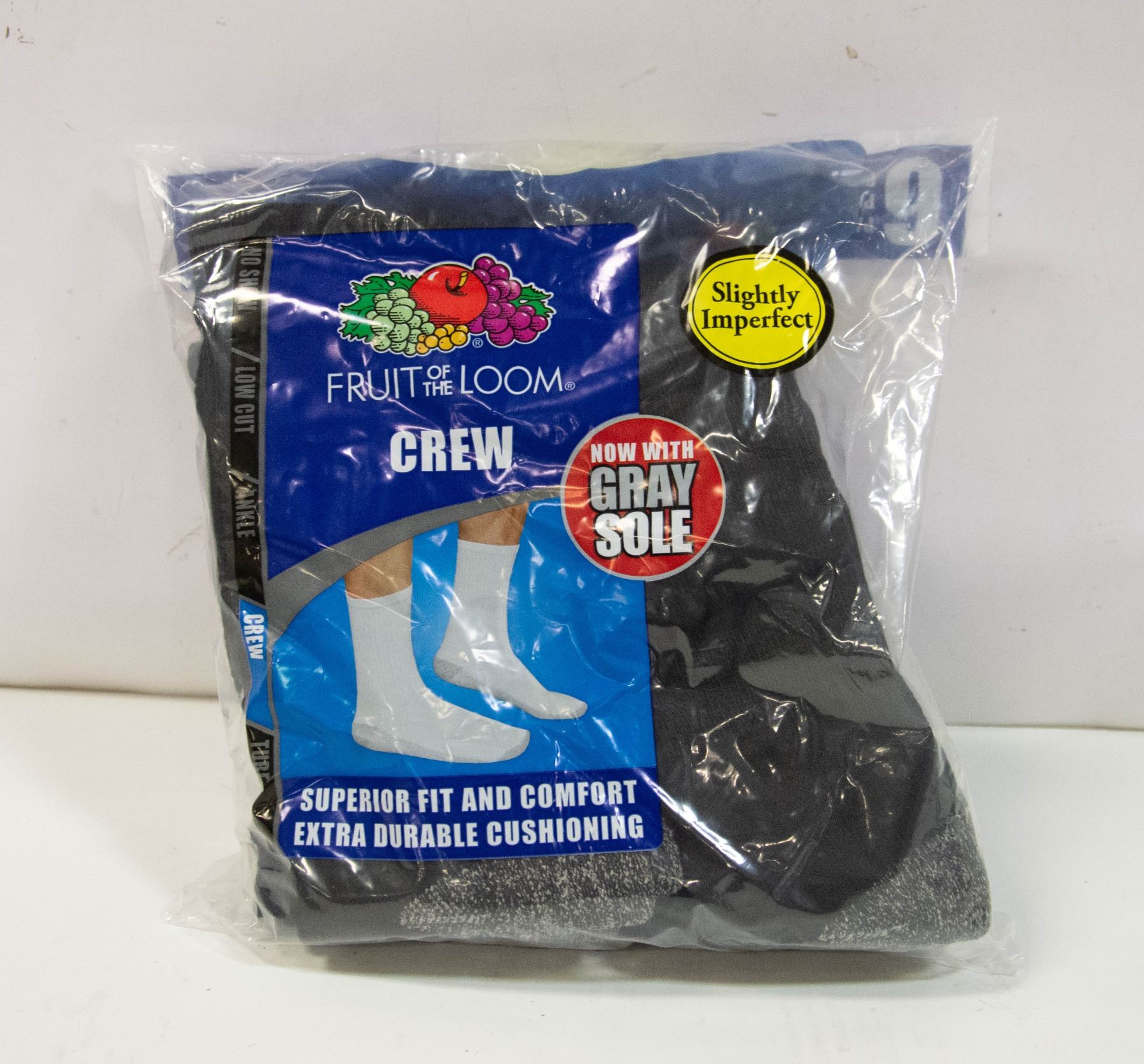 BLACK CREW SOCKS,SIZE 12-16,6-PACK,FRUIT OF THE
