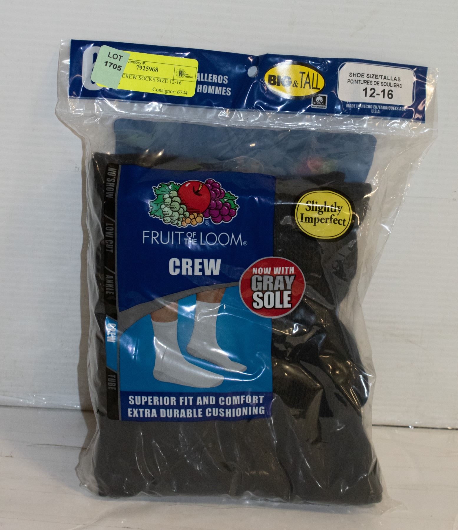 BLACK CREW SOCKS SIZE 12-16 6-PACK