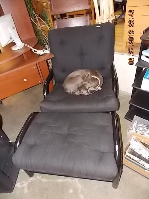 BLACK CUSION & METAL OVERSIZE CHAIR AND OTTOMAN