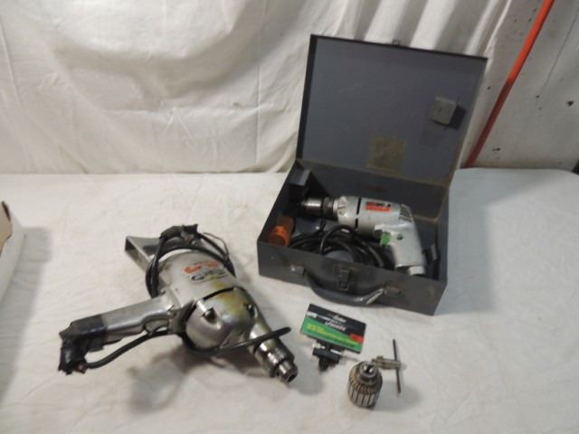 HUGE INDUSTRIAL DRILL INCLUDED ALONG WITH SKIL 3/8" HAMMER DRILL, ADJUSTABLE SPEED CONTROL. BOTH NICE HEAVY DUTY UNITS. BOTH FOR ONE MONEY.