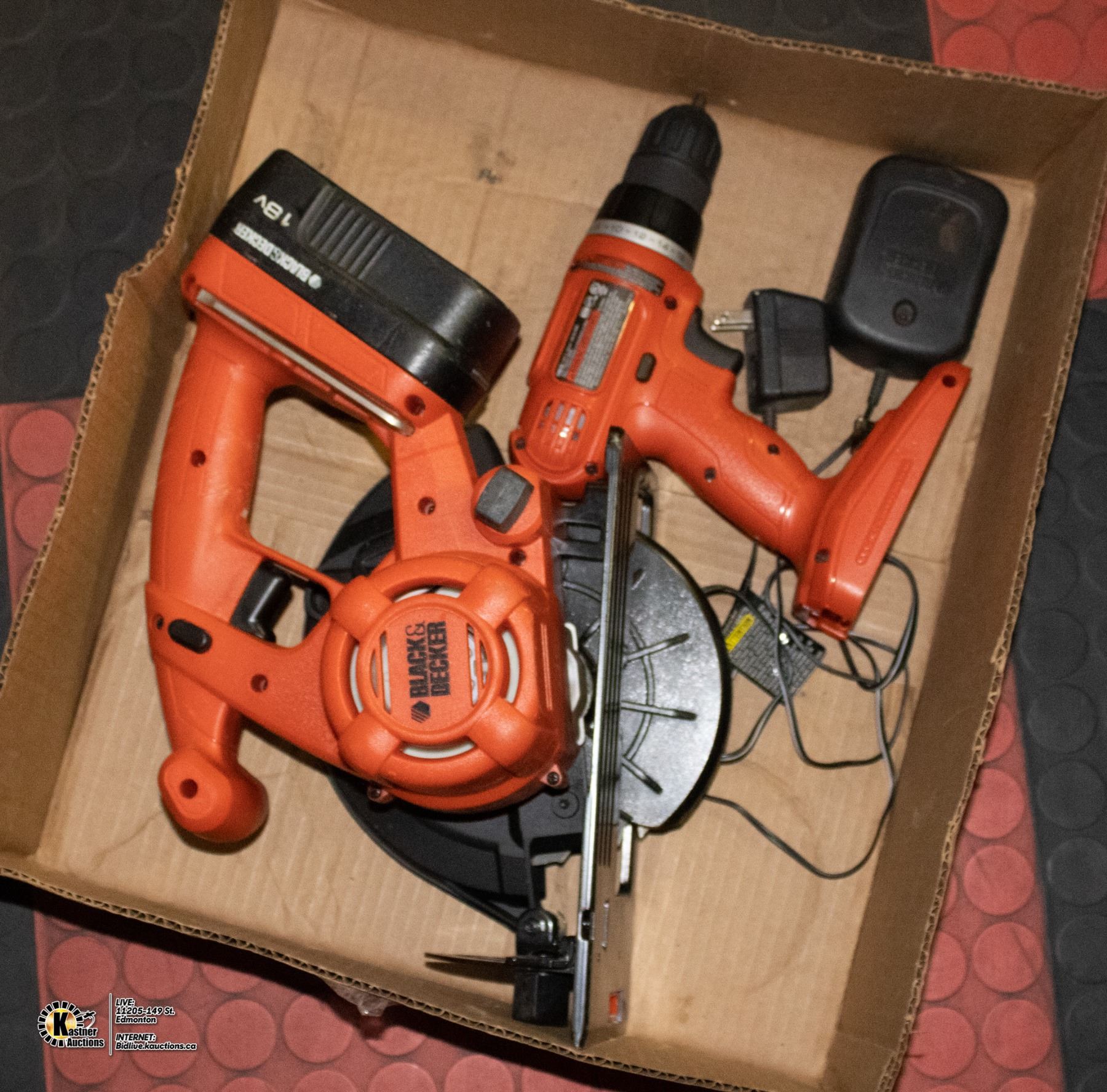 BLACK & DECKER 18V DRILL, SAW AND CHARGER