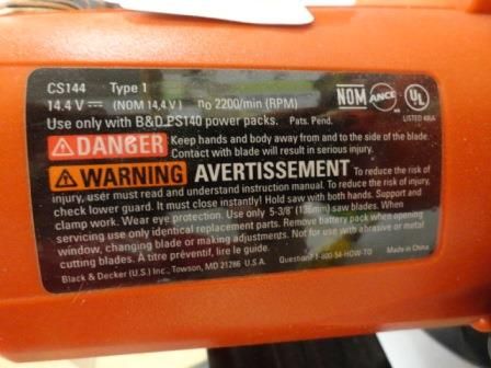 BLACK & DECKER FIRESTORM 14.4v CORDLESS 4" CIRCULAR SAW WITH CASE