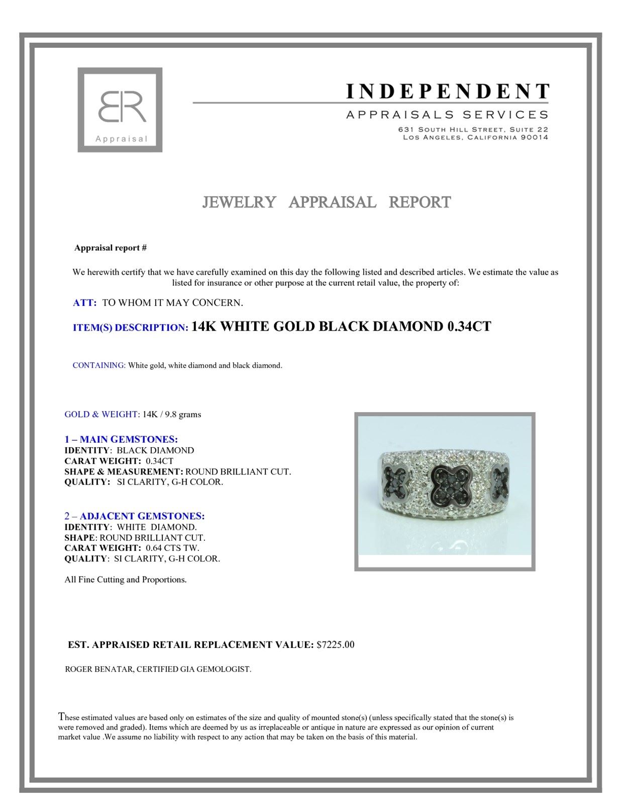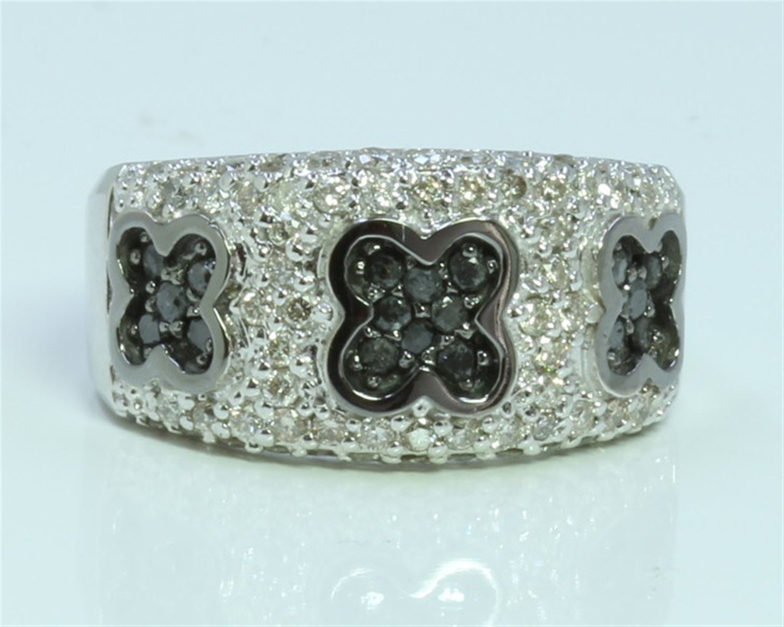 14K WHITE GOLD RING 9.8 GRAM WHITE DIAMOND 0.64CT BLACK DIAMOND 0.34CT