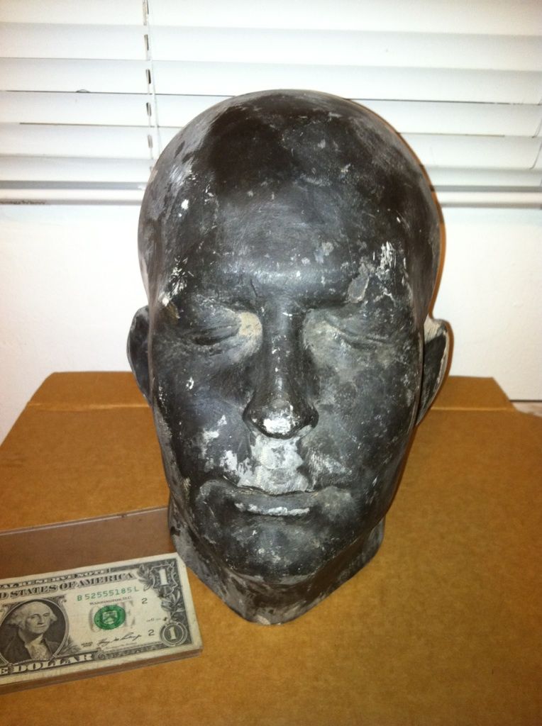 This is a black resin full head. It is rigid and hollow inside. Excellent for your Haunt, sculpting, or to display your prized hat, mask, or appliance on.