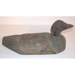 Black duck decoy with tack eyes. Unmarked and unsigned.