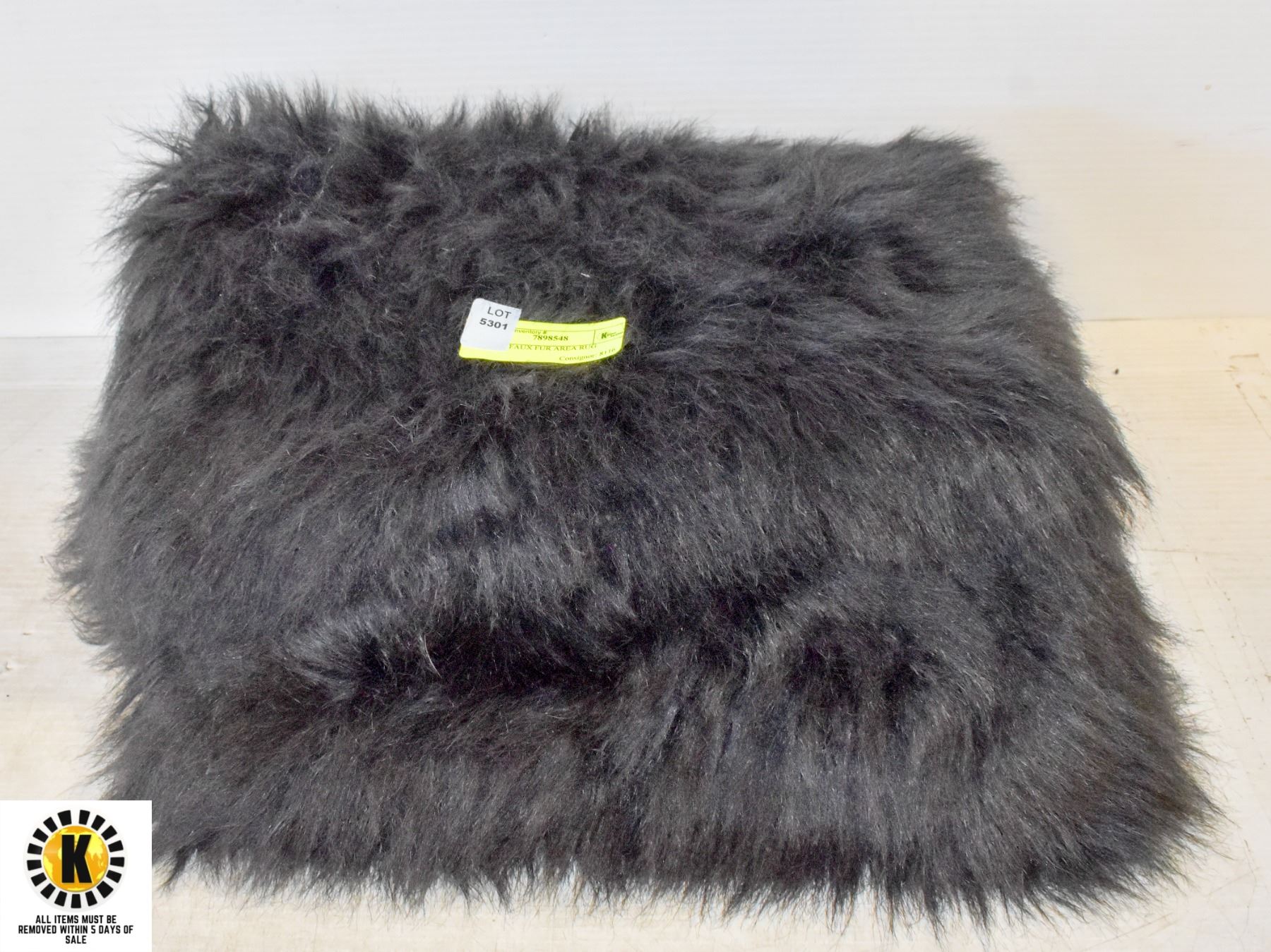 BLACK FAUX FUR AREA RUG