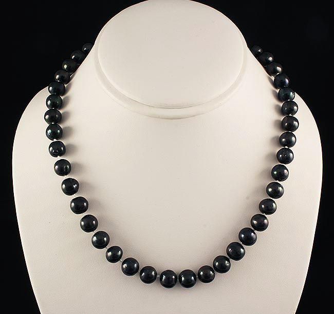 18 INCHES LONG CULTURED FRESHWATER PEARL BLACK ROUND 10MM NECKLACE WITH METAL LOCK