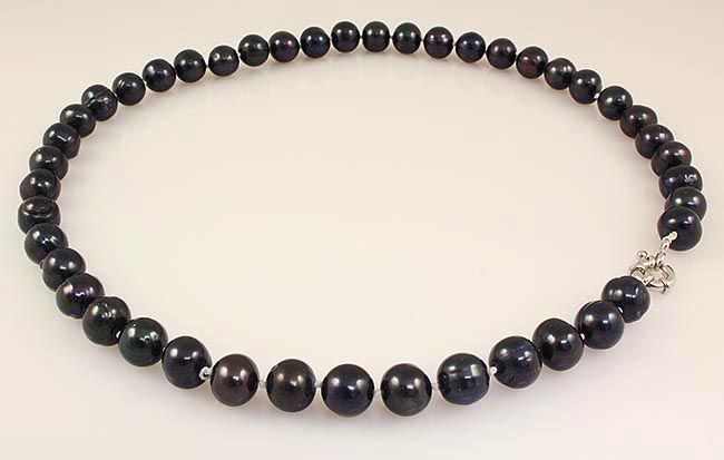 18 INCHES LONG CULTURED FRESHWATER PEARL BLACK ROUND 10MM NECKLACE WITH METAL LOCK