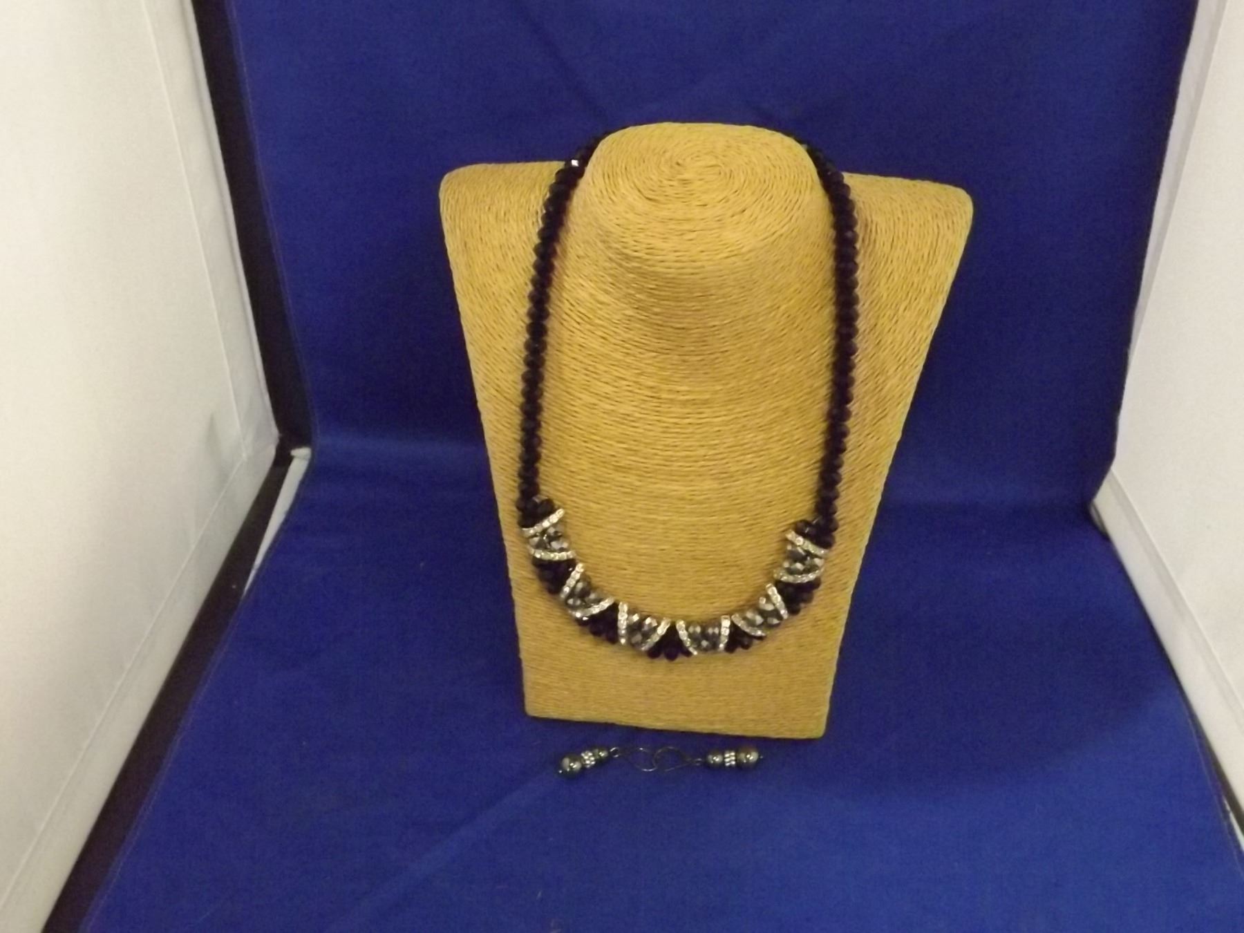 BLACK GLASS BEAD NECKLACE WITH EARINGS