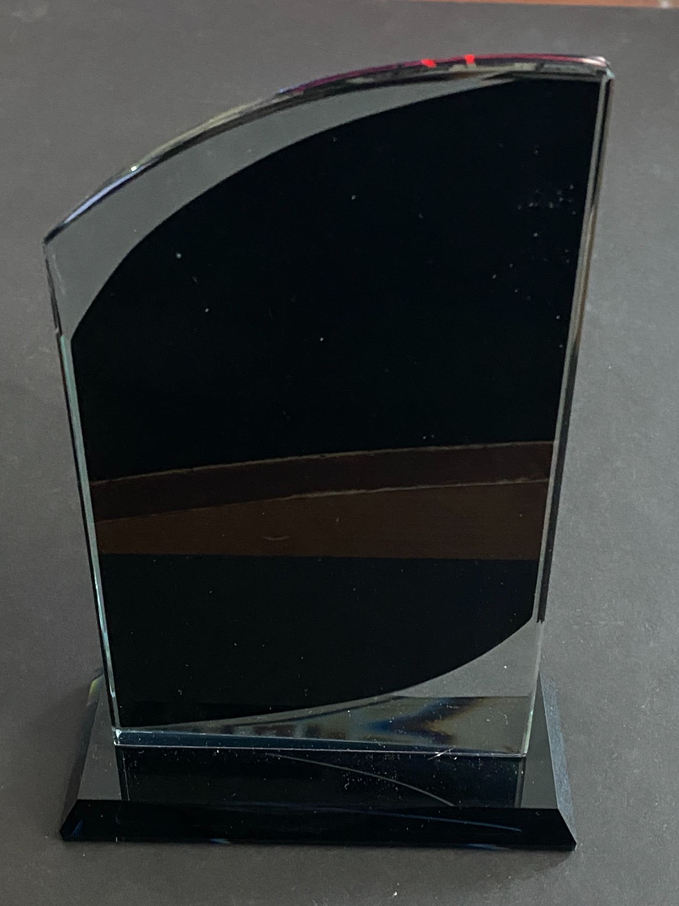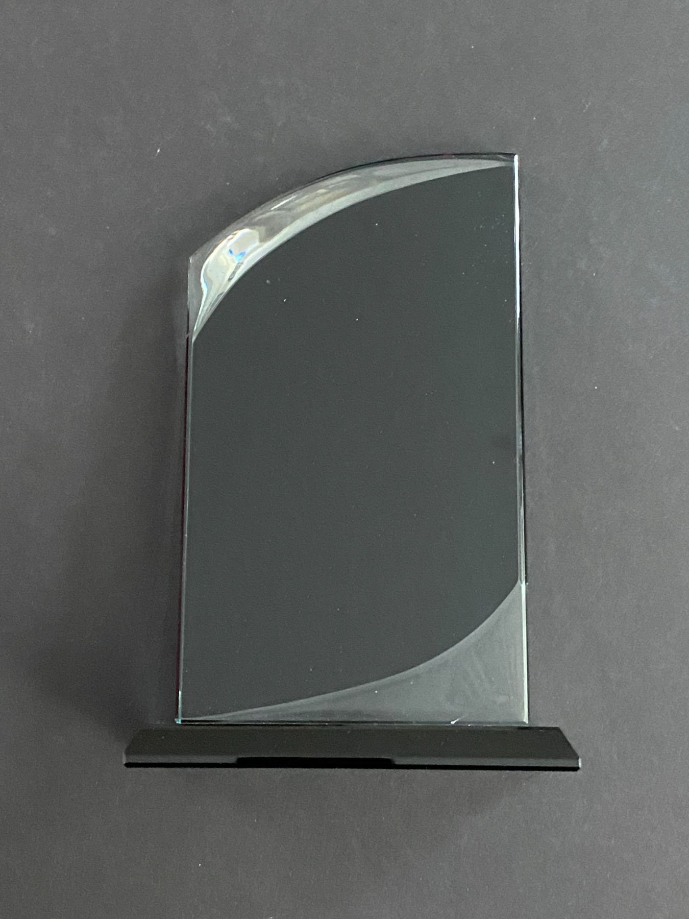 BLACK GLASS CURVED AWARD FROM THINGS ENGRAVED