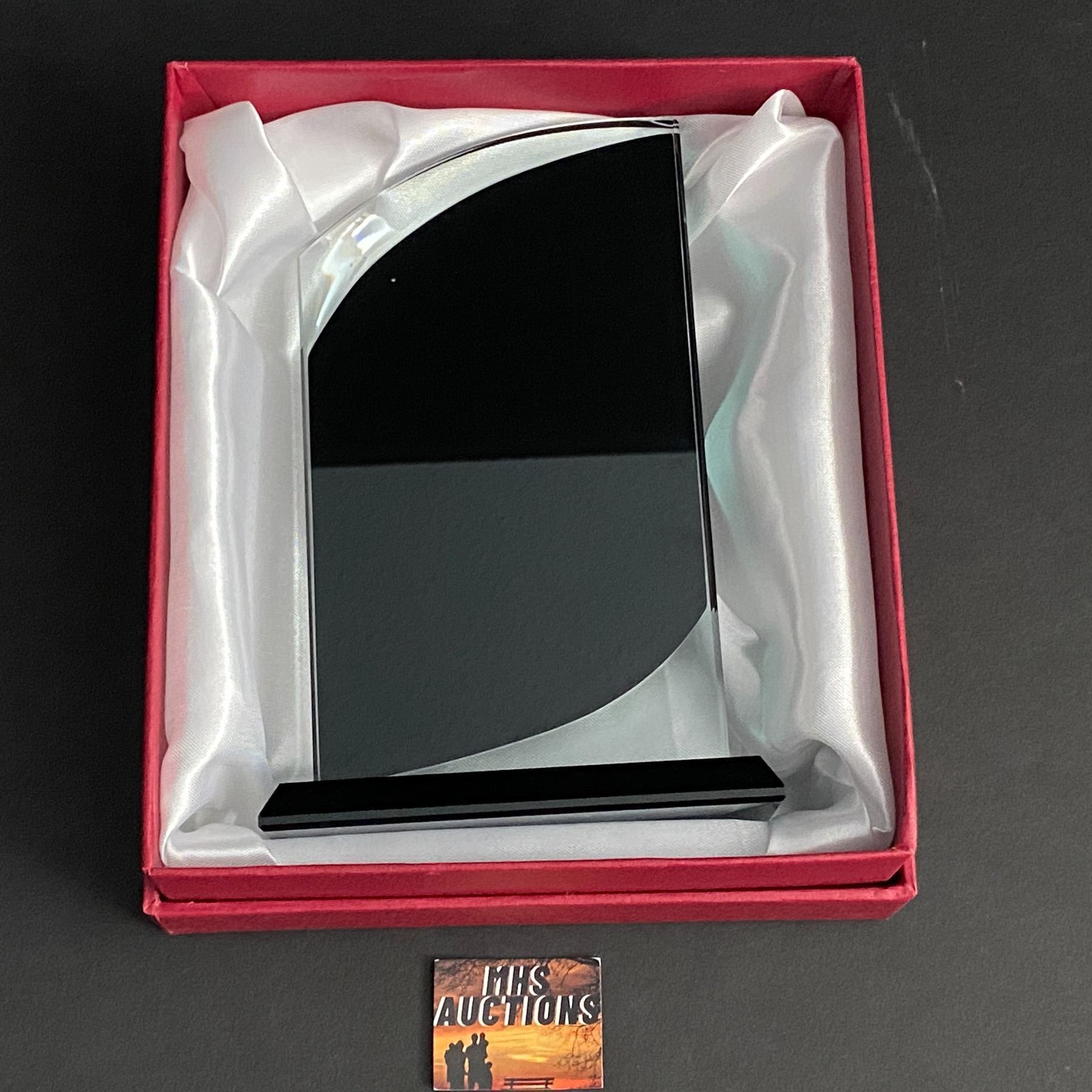 BLACK GLASS CURVED AWARD FROM THINGS ENGRAVED