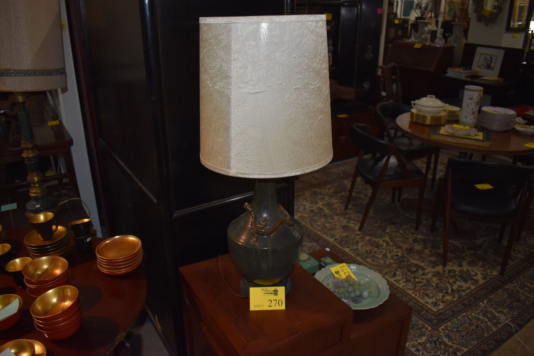 BLACK GLAZED VASE LAMP W/WATER HYDRIA MOTIF