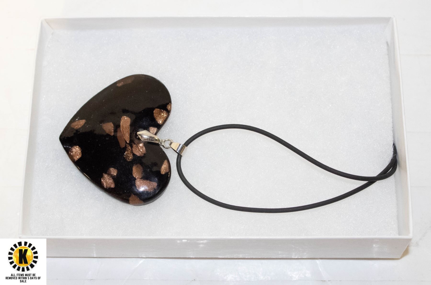 BLACK GOLD FOIL HEART LAMPWORK NECKLACE 18"