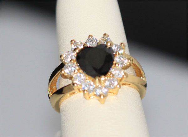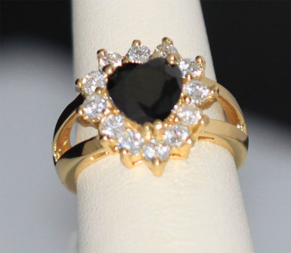 BLACK HEART SHAPED CZ 14K GOLD PLATED RING **|**|** BLACK HEART SHAPED CZ 14K GOLD PLATED RING ; METAL BRASS; BRAZILIAN JEWELRY; 14K GOLD PLATED ; MSRP: $0