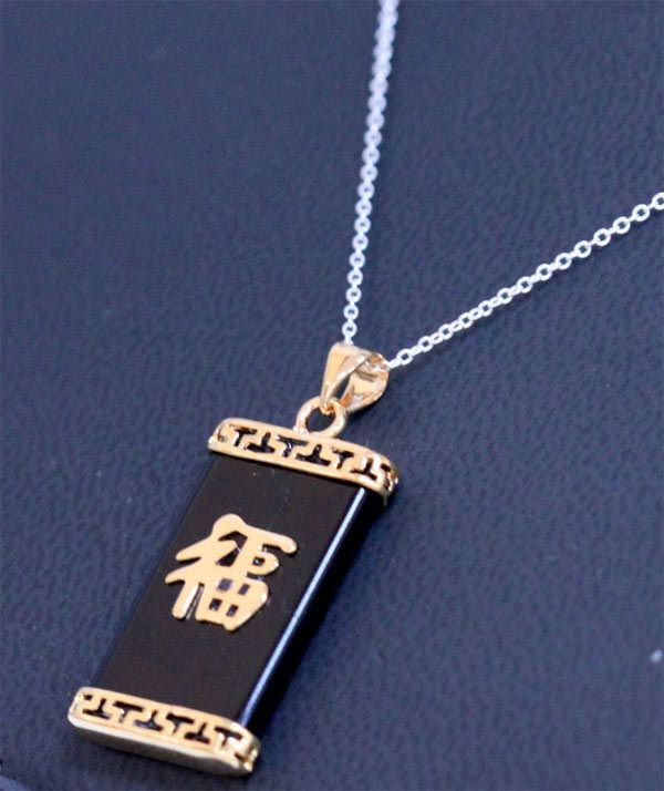 BLACK JADE YELLOW BRASS PENDANT WITH SILVER CHAIN **|**|** BLACK JADE YELLOW BRASS PENDANT WITH SILVER CHAIN ; MSRP: $200