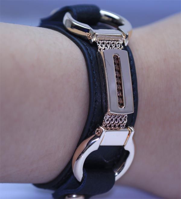 BLACK LEATHER AND ROSED BRASS BRACELET **|**|** BLACK LEATHER AND ROSED BRASS BRACELET ; MSRP: $600