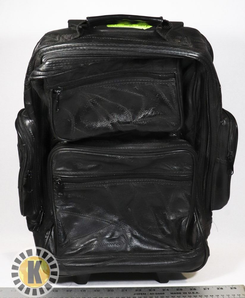 BLACK LEATHER BACKPACK WITH WHEELS