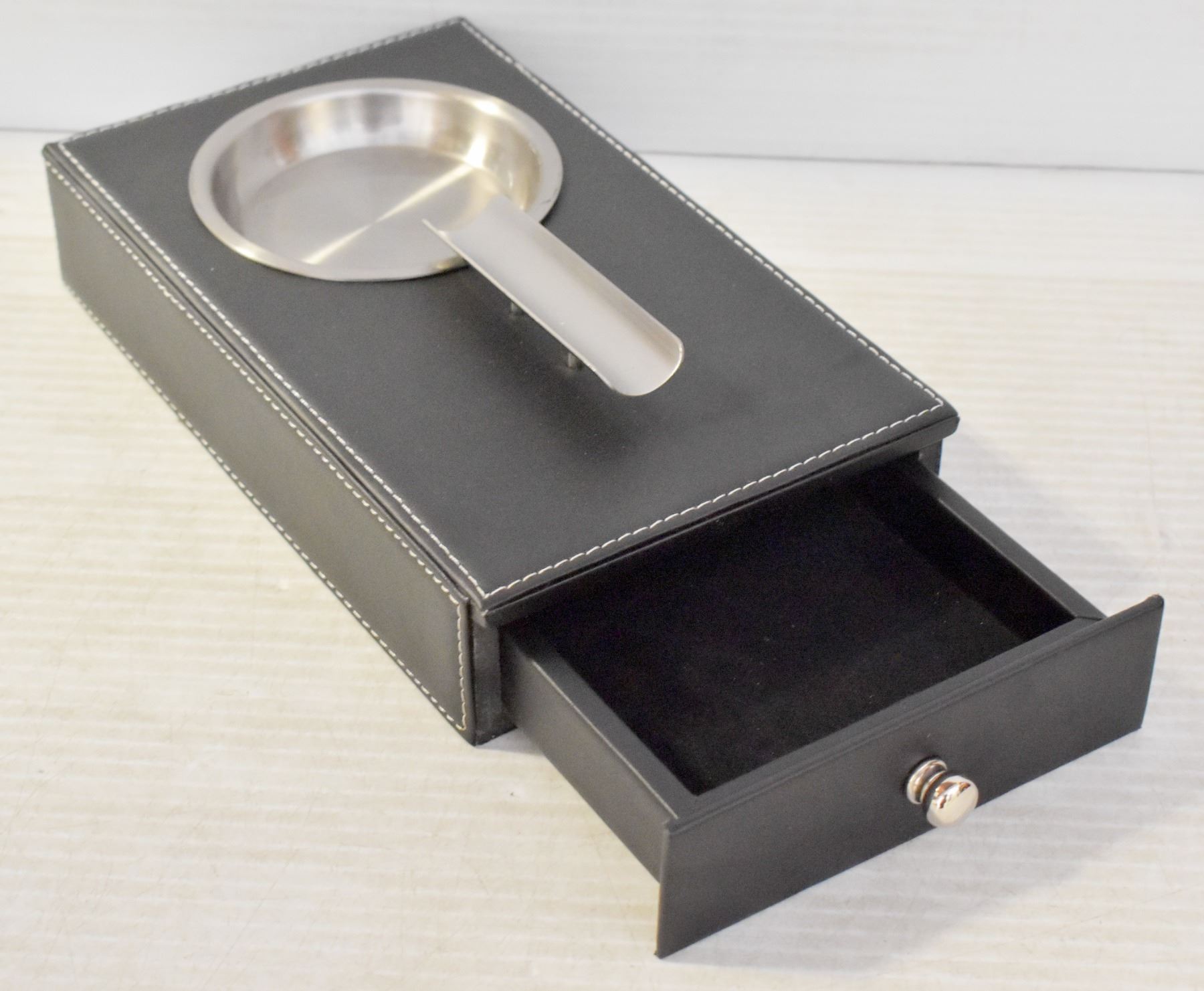 BLACK LEATHER CASE/METAL ASHTRAY WITH DRAWER