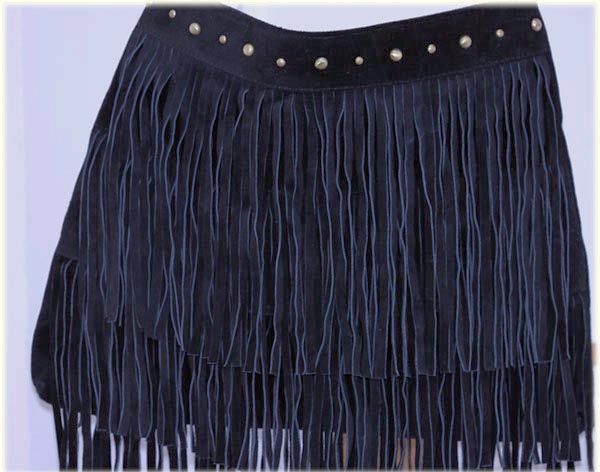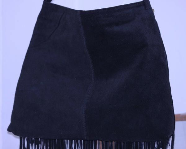 BLACK LEATHER HANGBAG WITH LAYER STIPS **|**|** BLACK LEATHER HANGBAG WITH LAYER STIPS ; DESIGNER'S RICKI; MEASUREMENTS 14.5"x12" ; MSRP: $150