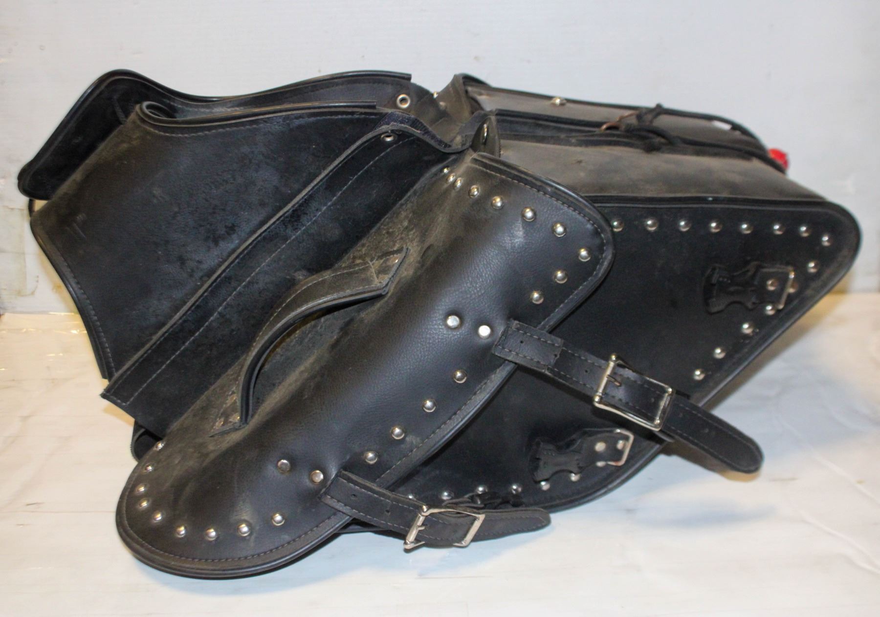 BLACK LEATHER MOTORCYCLE SADDLE BAG