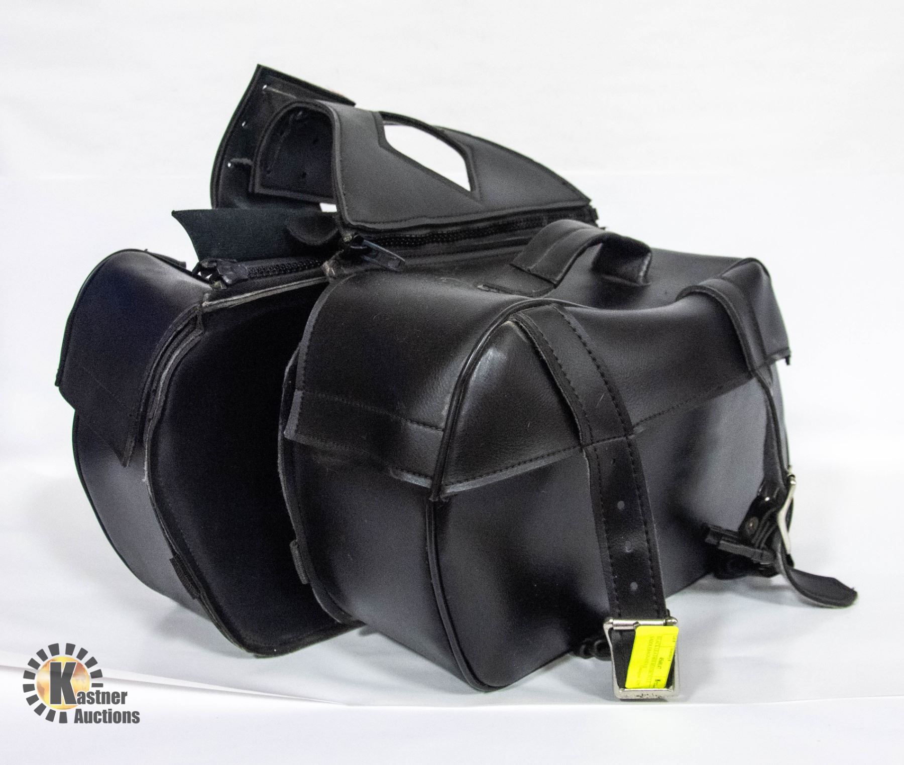 BLACK LEATHER MOTORCYCLE SADDLEBAGS-ESTATE