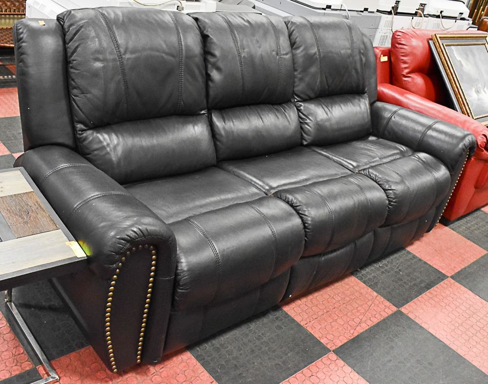 BLACK LEATHER NAILHEAD RECLINING SOFA