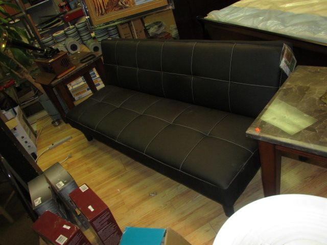 BLACK LEATHER STYLE KLICK KLACK COUCH - NEW