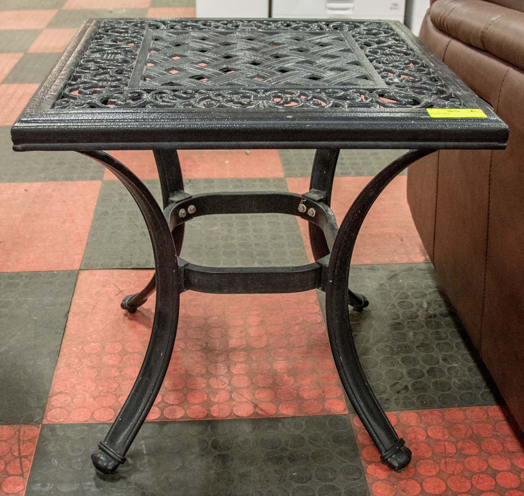 BLACK METAL TABLE APPROX 22" TALL 22" WIDE 22" LON