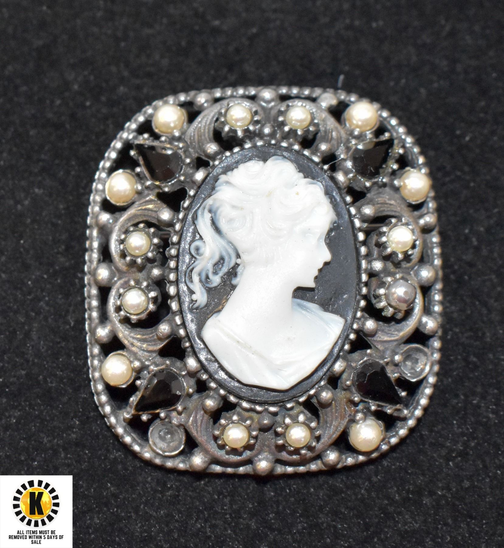 BLACK N WHITE CAMEO BROOCH