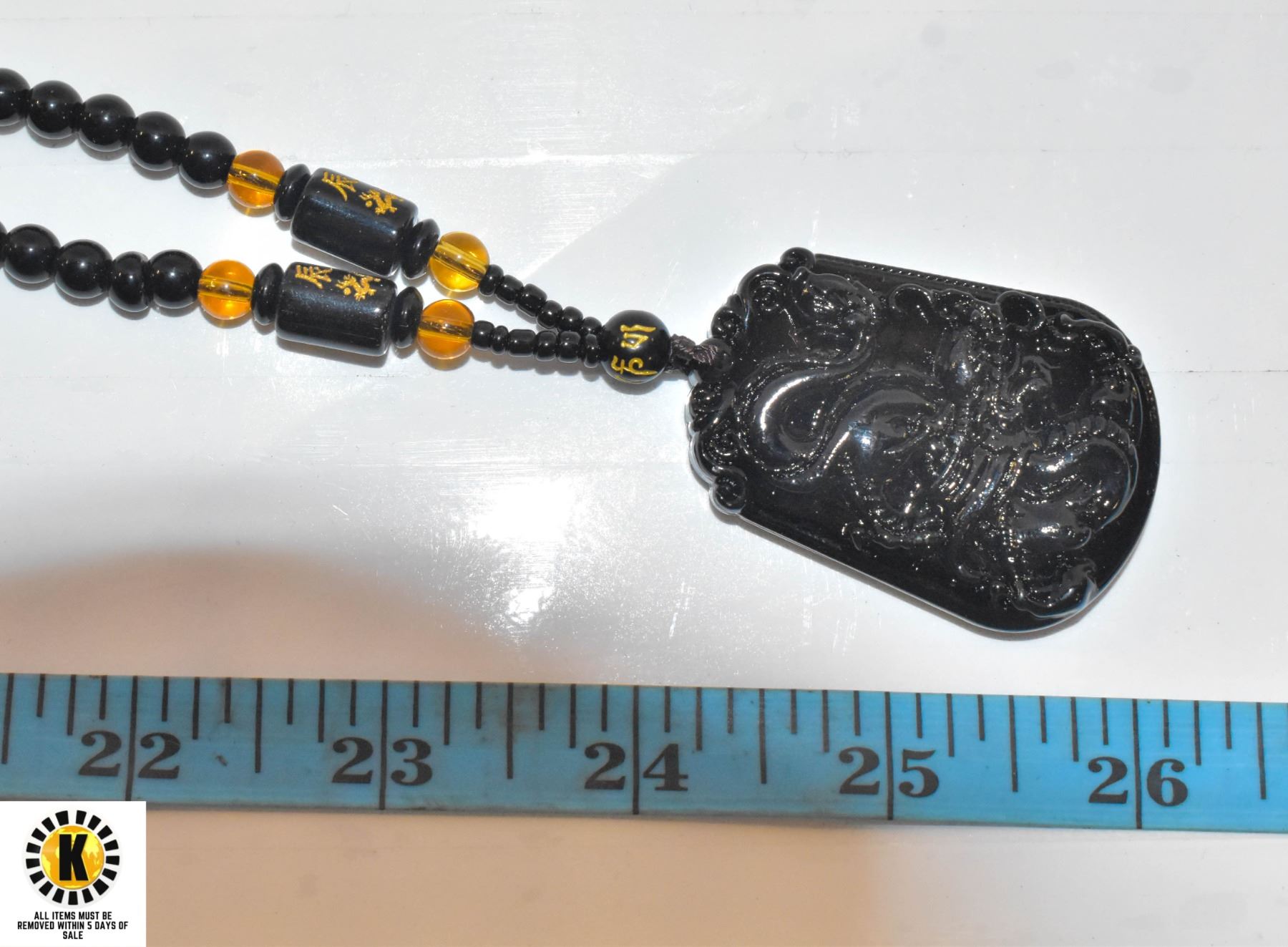 BLACK OBSIDIAN DRAGON PENDANT NECKLACE