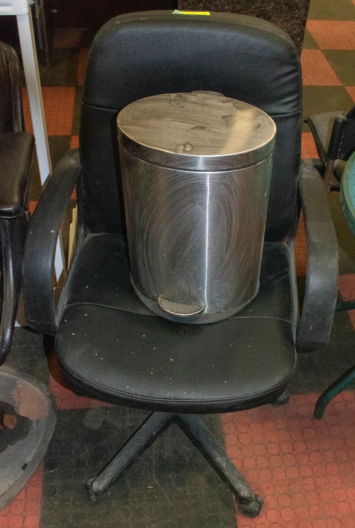 BLACK OFFICE CHAIR WITH STAINLESS STEEL TRASH CAN