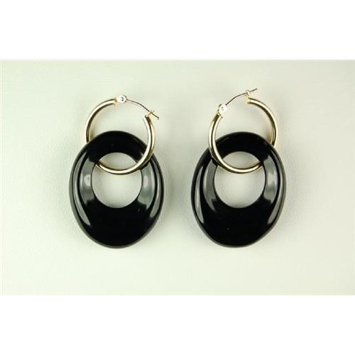 OVAL BLACK ONYX EARRING JACKET Dangle - to be worn with hoop earrings. This pair of Black Onyx earring dangles measure 1 1/4" x 1". (Gold Hoops sold separately)