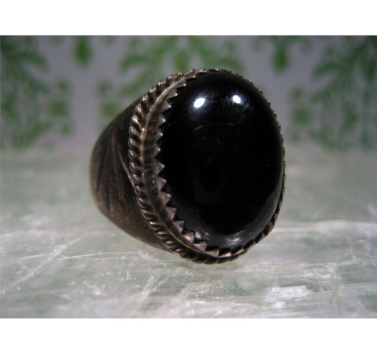 (1) BLACK ONYX SOUTHWESTERN STERLING SILVER RING 9 T.W. 8.6 GRAMS